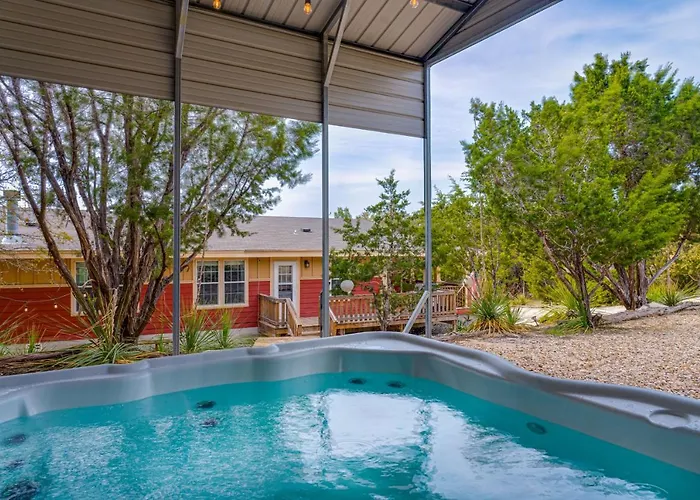 La Villa Hill Country Gem Sunset Deck, Hot Tub And Fire Pit Canyon Lake si trova a 5 km da Randolph Recreation Park e invita gli ospiti a godersi un patio.